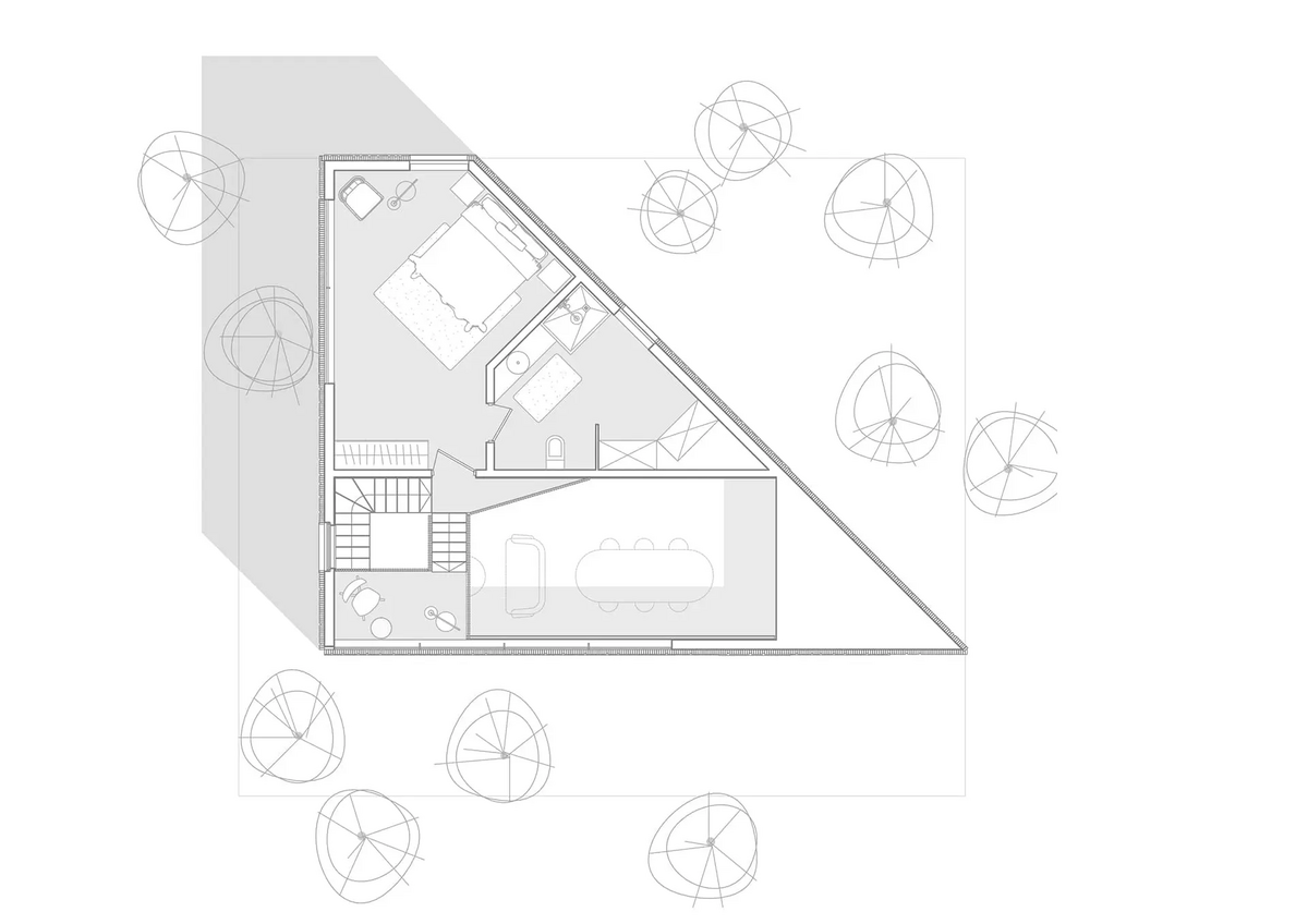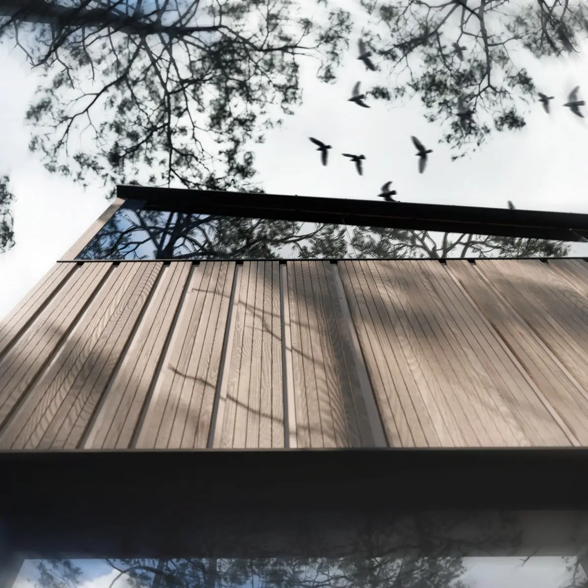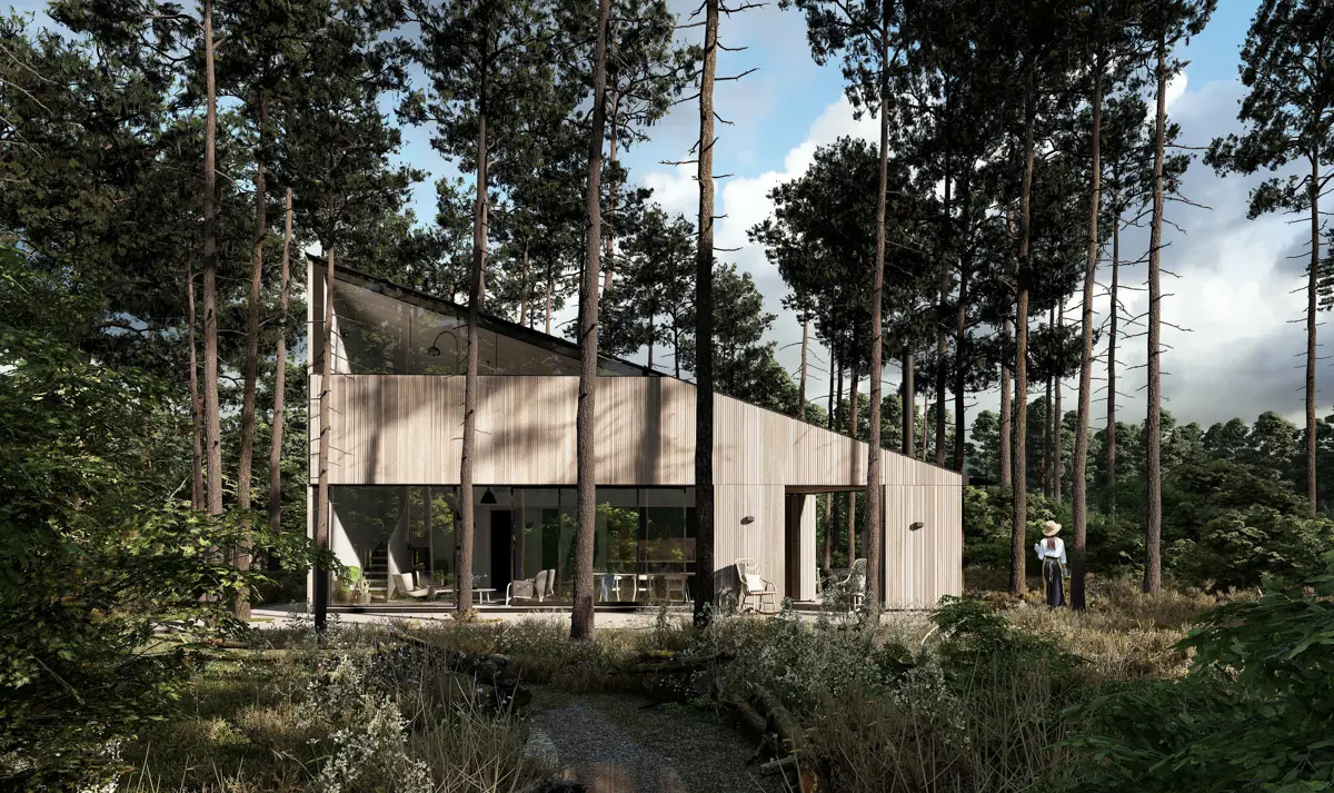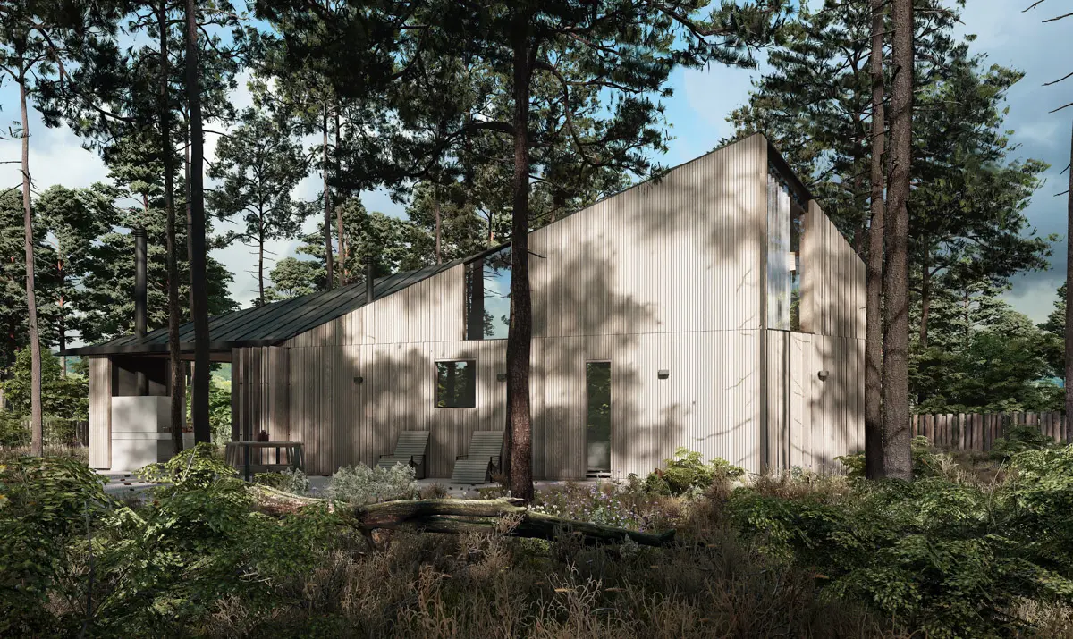 Этот дом проектировали не только архитектор с заказчиком, но и сам лес. Каждое дерево на участке подсказывало, где поставить то, как разместить стены, как развернуть окно, чтобы сохранить игру света и тайну ландшафта. В результате дом стал не гостем, а частью леса — а из его комнат и пространств открываются виды, которые кажутся продолжением интерьера, вливающегося в природу. Так семья заказчика сможет жить здесь с ощущением, что дом всегда был среди этих сосен, и от этого ещё уютнее.